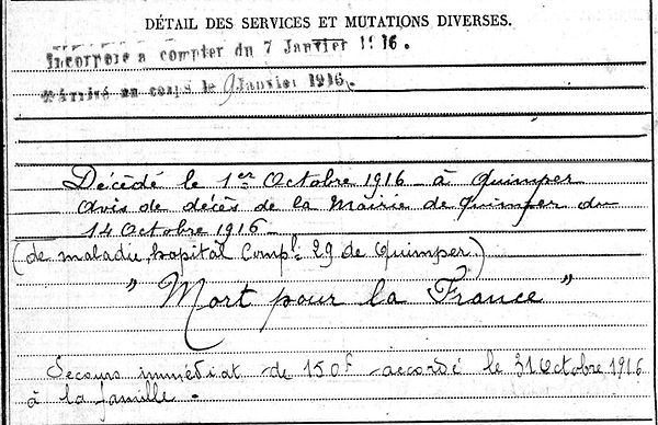 Combattants Finistériens n'ayant pas la mention "Mort pour la France"
